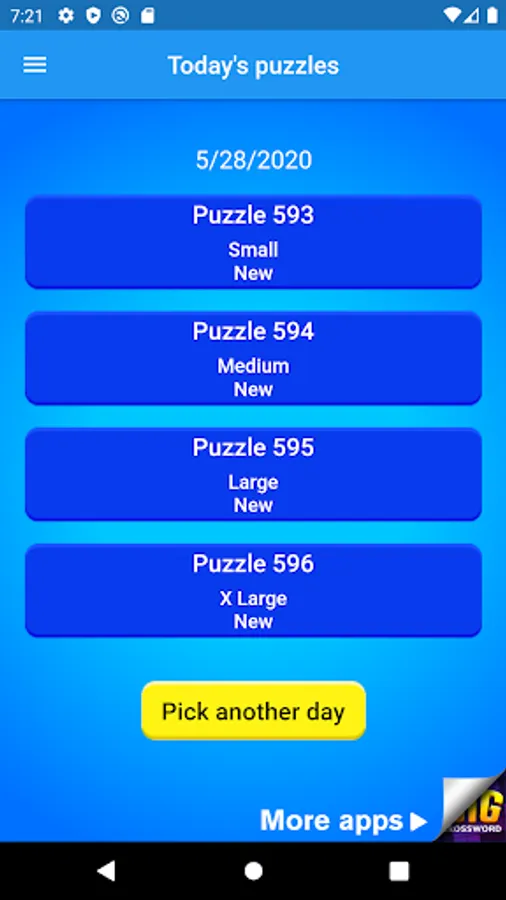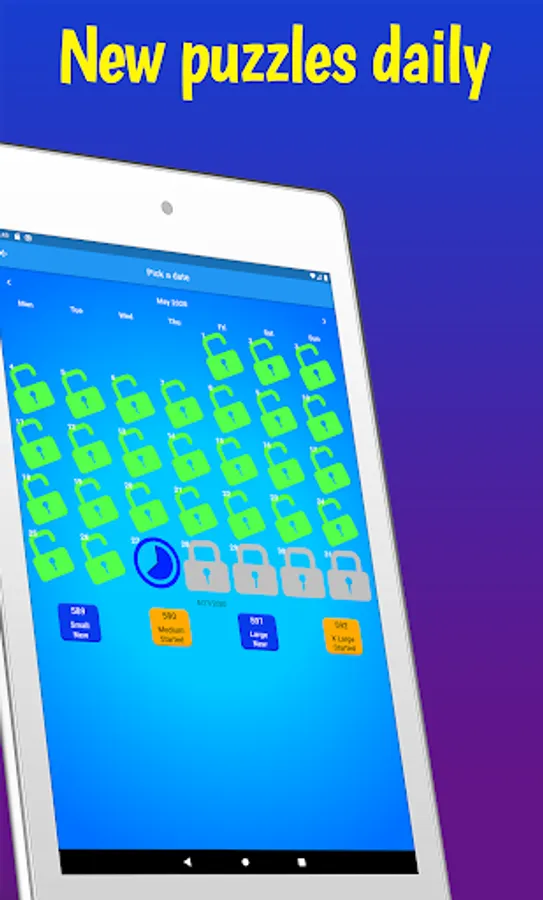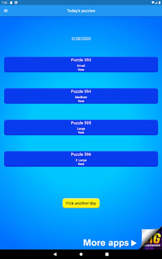 Grids range from straightforward 4x4 grids up to hard 7x7 grid challenges.