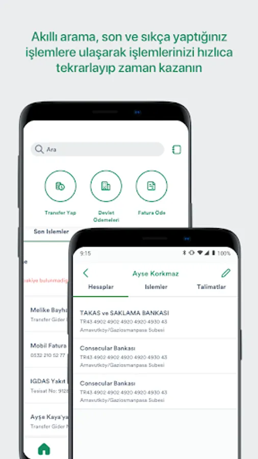 Save time with great user experience, such as global search to search and take actions easily on the results, or such as last/frequent transactions list to find mostly looked up records. You can also manage your receivers and make transaction with with contacts easily.