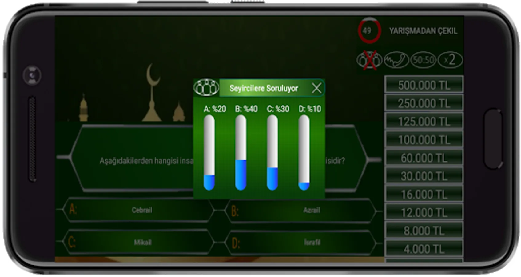 The competition consists of 3 different levels, when you start the game, you will be asked questions from easy to difficult and given 1 minute to answer. The wildcard rights are granted by adhering to the actual competition rules. The questions are taken from the questions asked in the real competition.