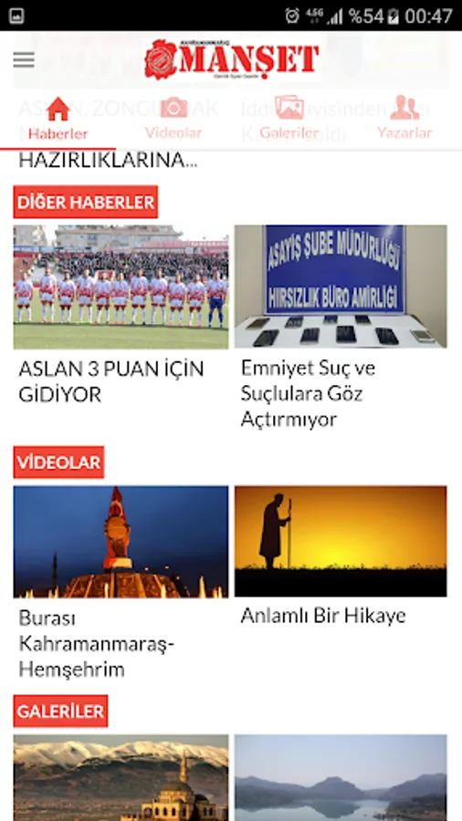 At first Kahramanmaraş and our land, including environmental and Current World Politics, Economy, Sports, Public Security, Health and many more categories news, Kahramanmaraş cuff elegant and simple interface of the mobile application, you can follow with pleasure with easy news transitions and rich menu options.