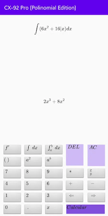 CX-92 es una nueva y rápida calculadora con la capacidad de realizar integrales y derivadas de manera sencilla. Bastante práctica para estudiantes de secundaria, preparatoria y los primeros años de universidad.