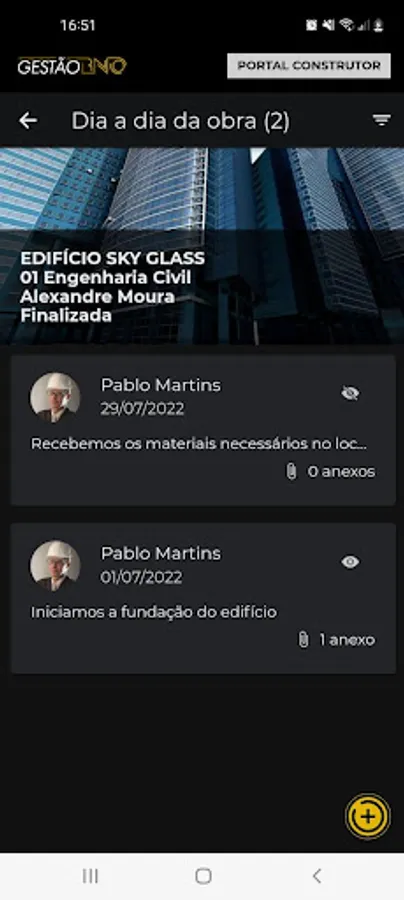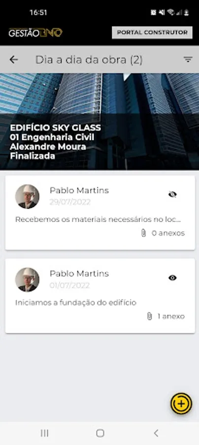 In addition to saving time in managing your projects, interacting with your office, you can make the relationship with your client more effective, with updated information directly from the construction site.
