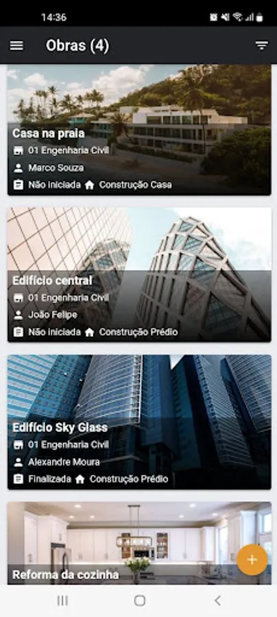 In addition to saving time in managing your projects, interacting with your office, you can make the relationship with your client more effective, with updated information directly from the construction site.