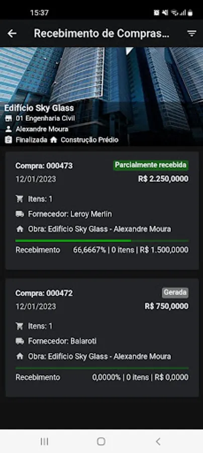 - Receive purchases and financial releases directly at the construction site