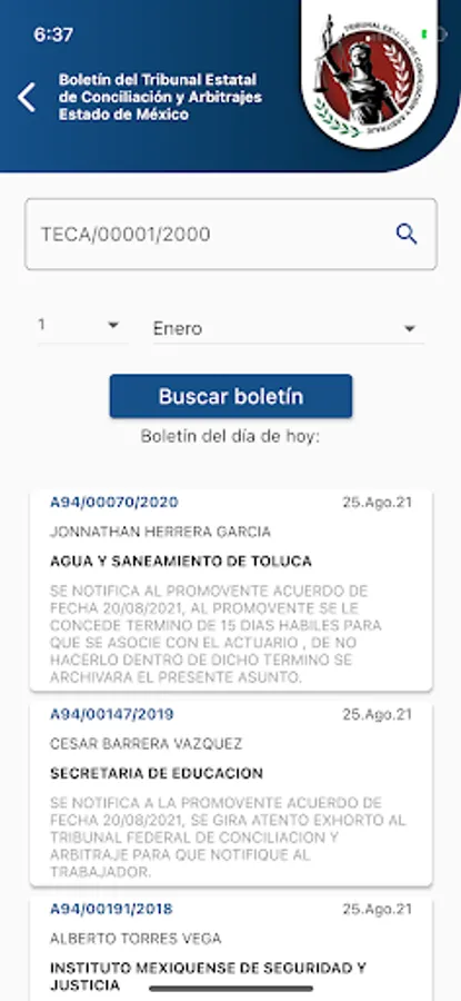 Consultation of Records, Bulletins, Hearings, Location of Rooms, TECA and Labor Laws of public servants of the State of Mexico and Municipalities.