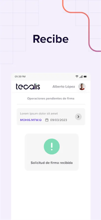 Signature requests can be sent directly to any of the devices registered with the app. The pending signature requests, which have previously arrived as notifications, will appear on the main screen. In this way, the agent at the physical point will offer the client or user the device to sign, accompanying them in the process if necessary.