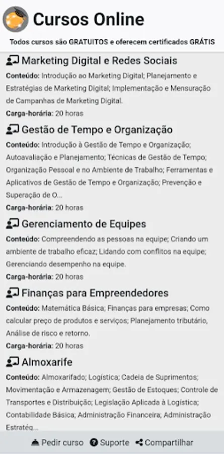 In this application, we share the path to hundreds of free online courses from the best platforms in Brazil. That is, you DO NOT pay for the course or the certificate.