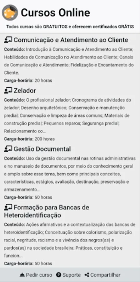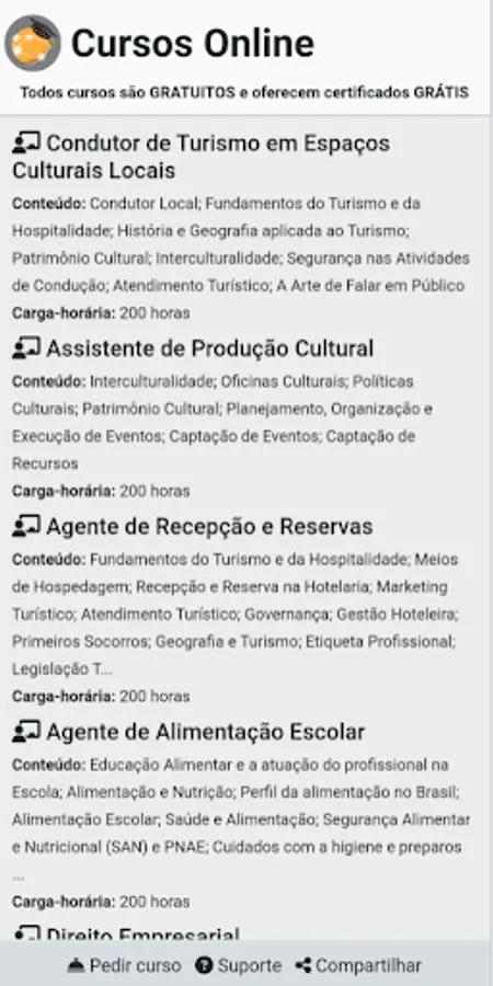 ATTENTION: Read what the app offers before disqualifying us in the comments. We made this app for you with love. Please don't harm us. By downloading it, you agree to be aware of our privacy policy, available here in the store, according to Google's rules. This application does not ask for your data, but the course platforms do, as it is necessary to generate your certificate. Therefore, we ask you to read the rules for each platform. All must comply with the General Personal Data Protection Act (LGPD).