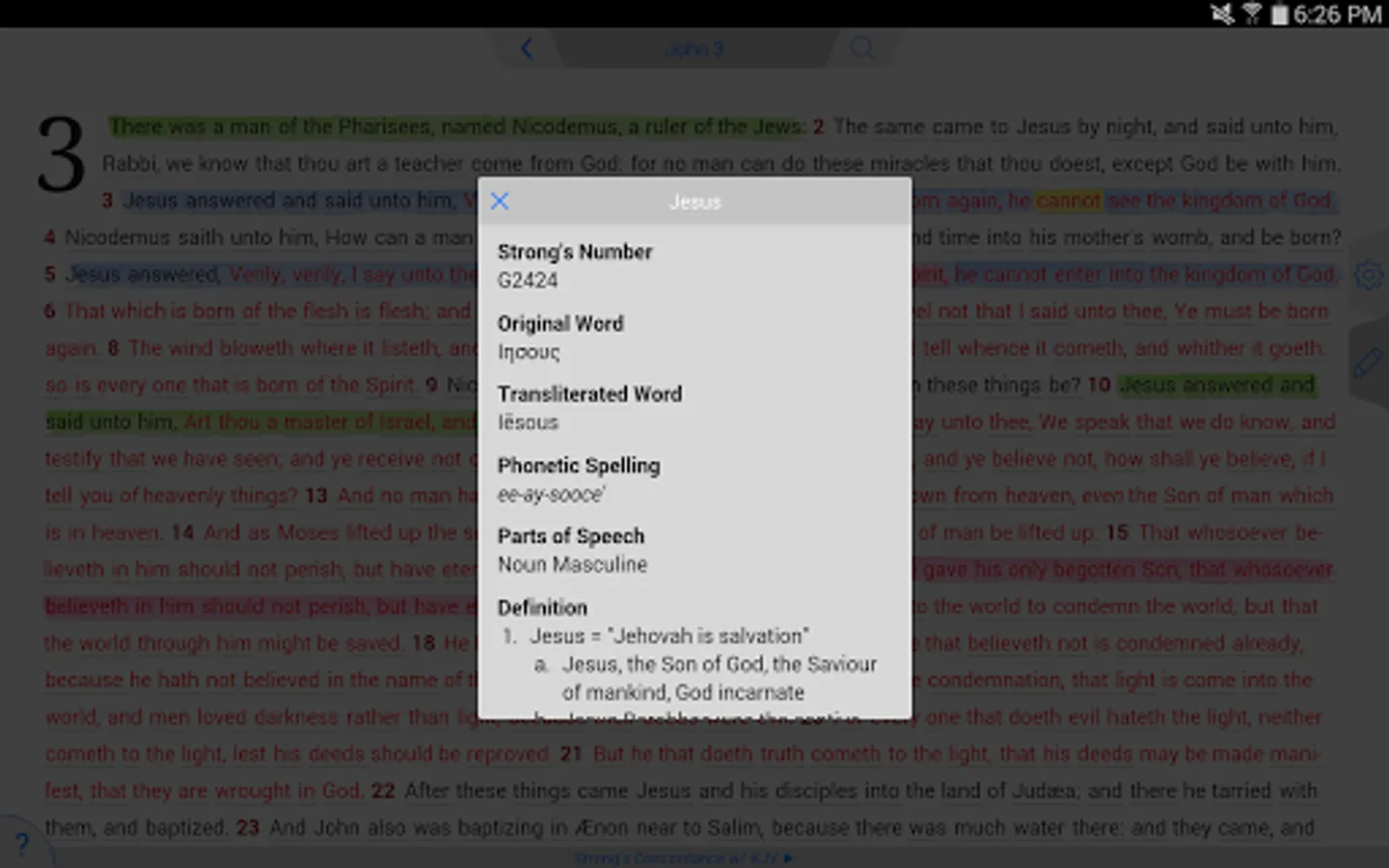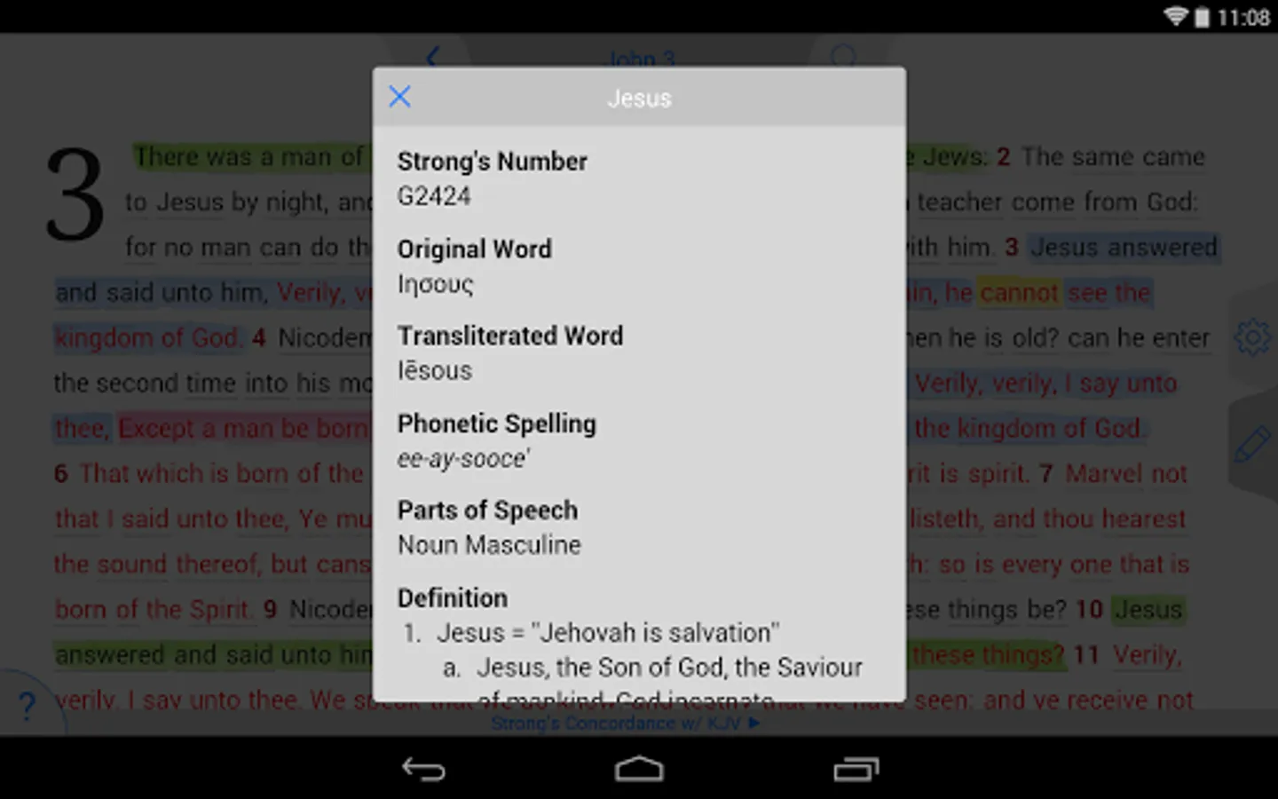 - Includes New Testament Thayer's Greek definitions and Old Testament Brown-Driver-Briggs Hebrew definitions