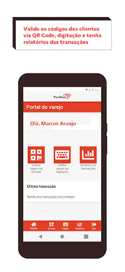 • Validate the withdrawal from the commercial establishment via QR code and typing;