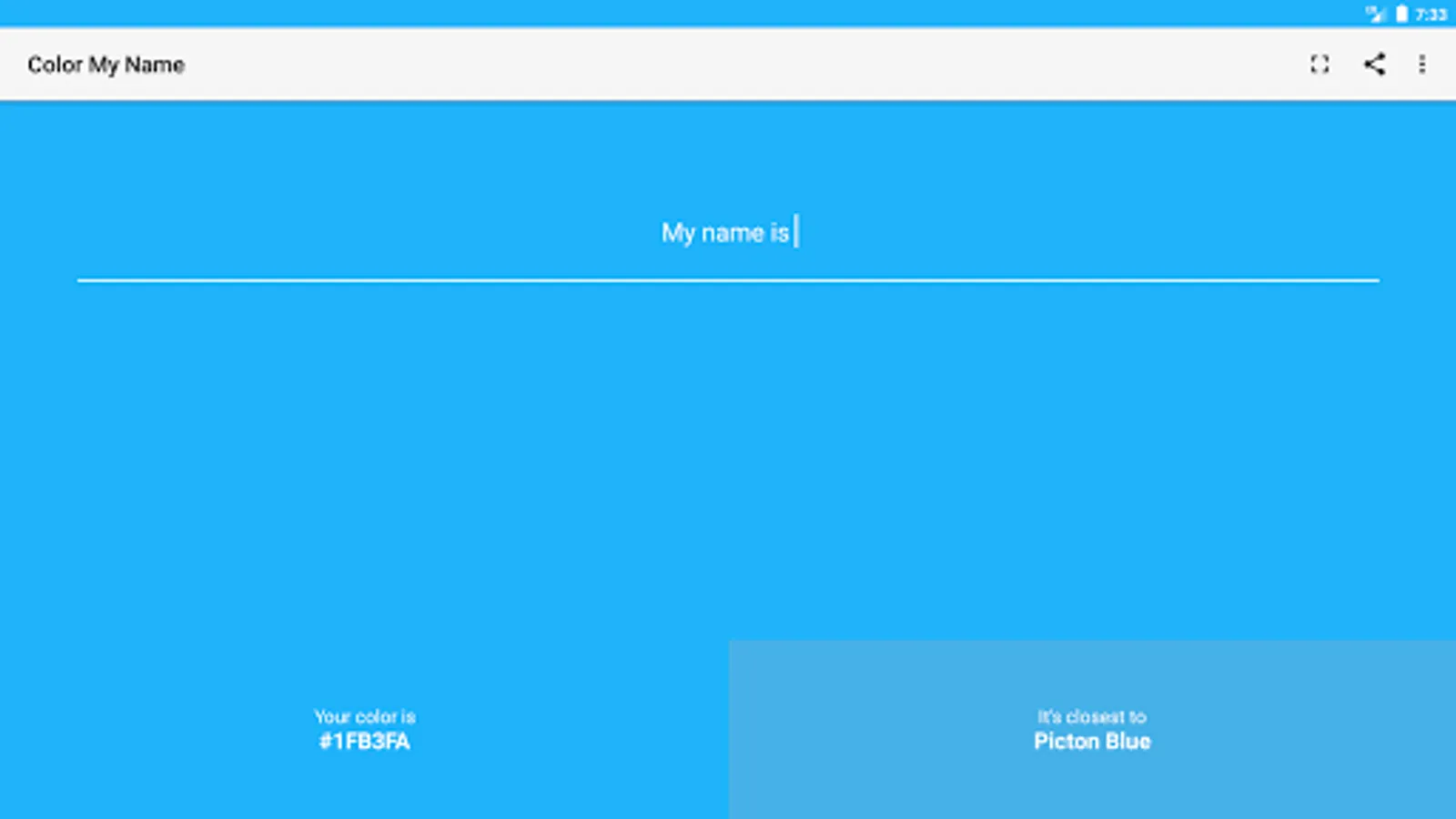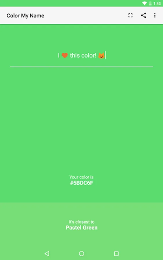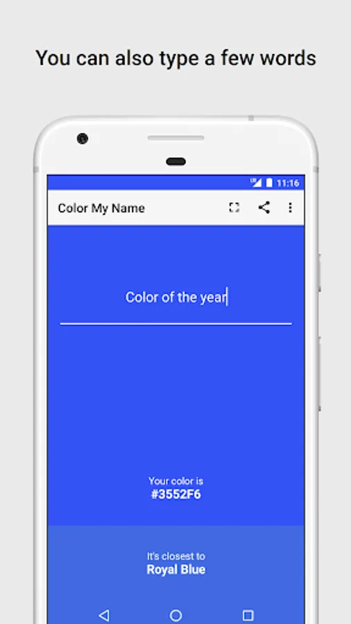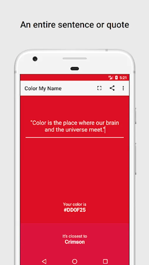 Type a name, title, quote, or sentence, and instantly see a color fill your screen.