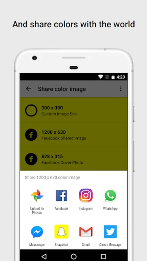 Easily share color images on your social profiles, or send them using your favorite messaging or chat apps.
