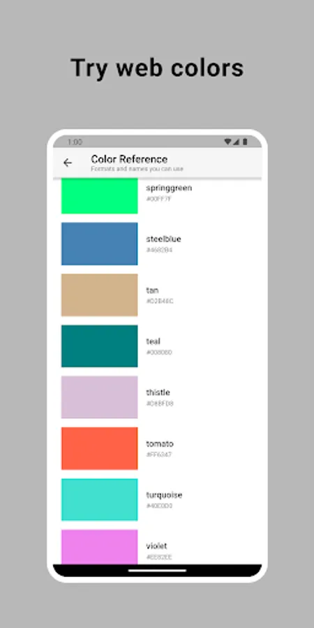 With Colortypist, you can type in a color by its name or code and see it fill your entire screen in real-time while you type. Colortypist lets you play around with colors, learn and practice color names and formats, and get inspiration for anything that's related to colors.