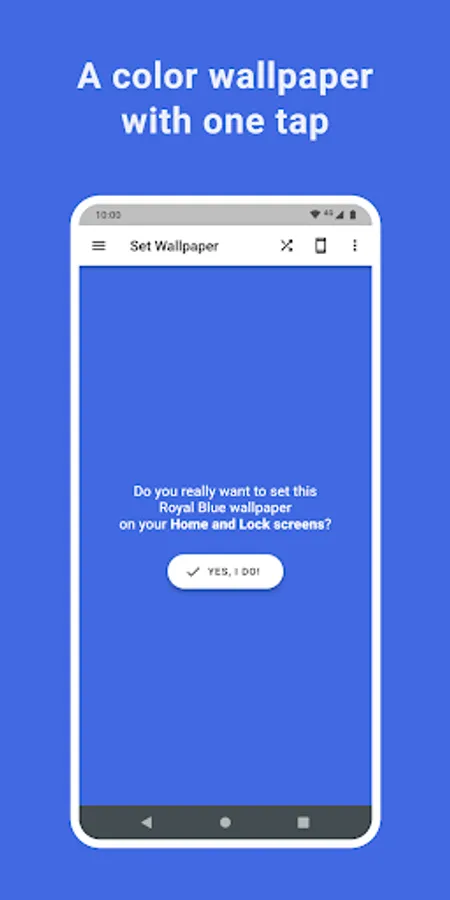 RGB Color Wallpaper Pro remains extremely easy to use: just tap a confirmation button, and get instant results. And you can choose whether to set the wallpaper on the Home screen, on the Lock screen, or on both screens.