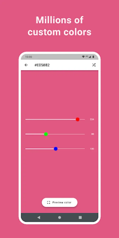 You can also simply drag 3 sliders to blend red, green and blue and create your own unique and beautiful color wallpaper. Or set your favorite custom color as wallpaper, just by typing a hexadecimal color code.