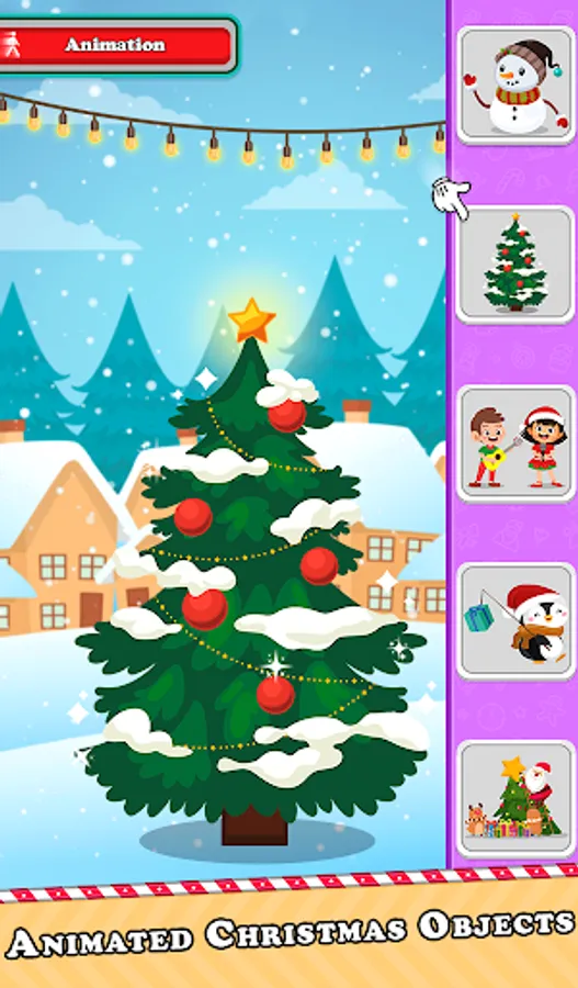 + Animated characters like Santa Claus, Christmas Tree, Snowman, Reindeer.