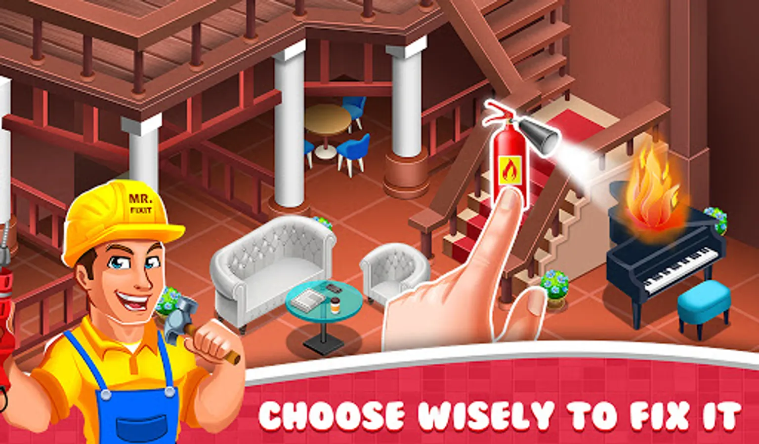 Be a Mr. Fixit Man. You have to rebuild, redesign and decorate the house, restore whatever has been destroyed and build your beautiful home.