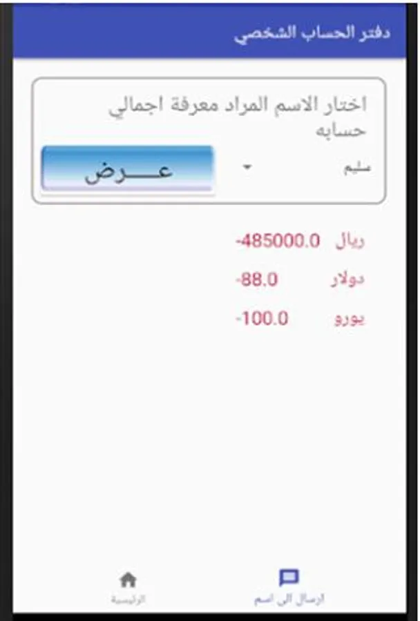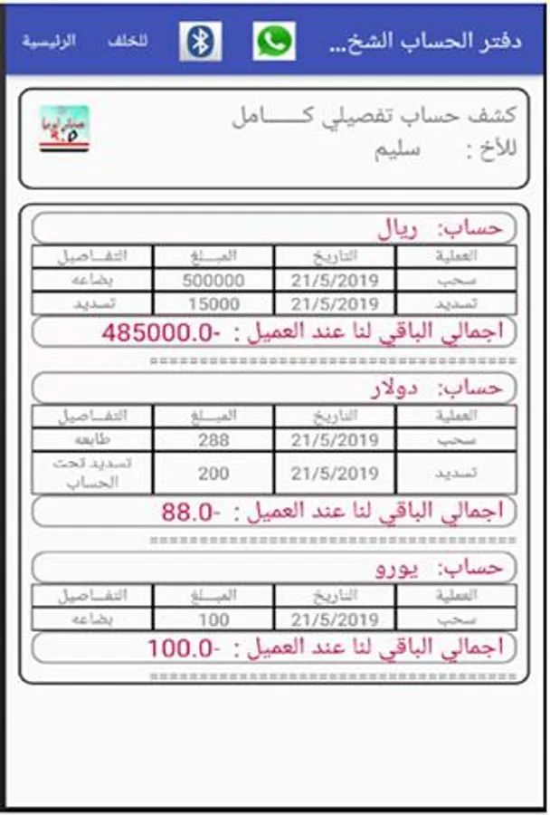 - Show the total amount of the remaining amounts to you at the customer or the customer and all the currencies you trade with him with the possibility of sending a text message to the customer in total.