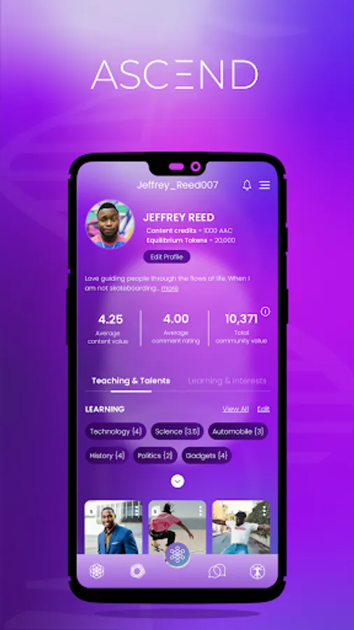 Proprietary cryptocurrency (Ascend Coin) allows content creators whose content is most helpful to receive revenue/value from other creators - new economic model gives way eventually to micro-lending feature, job board, crowd-funding and much more"