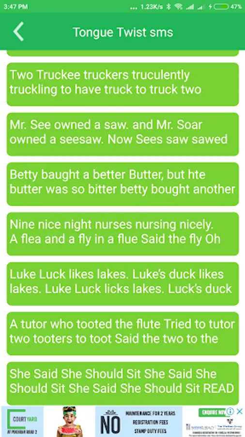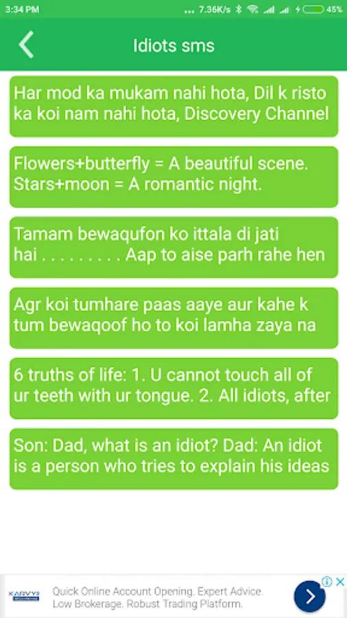 हर सेक्शन में अलग-अलग तरह के एसएमएस होते हैं
