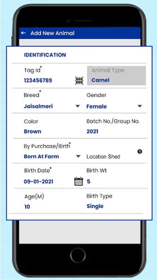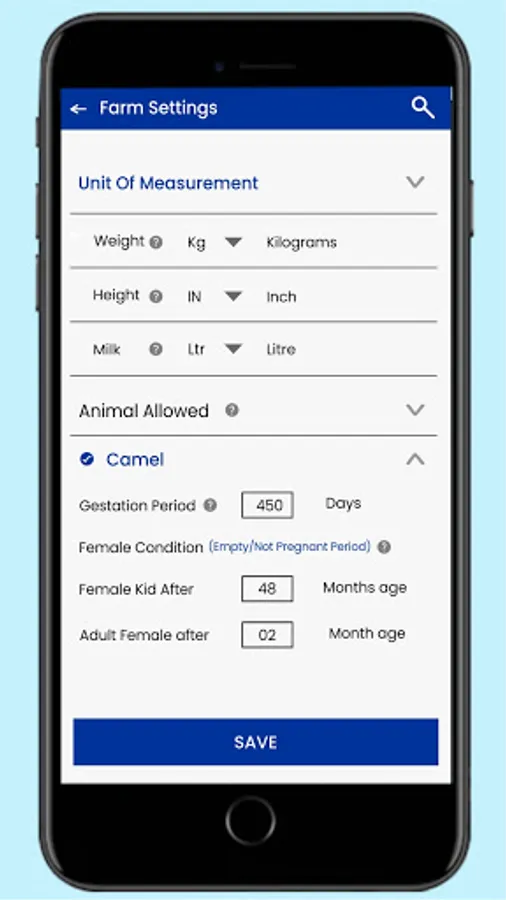 Camel Farming app helps Camel Farmer to keep track of all their individual animal details including Tag Id, name, gender, source, parental details.