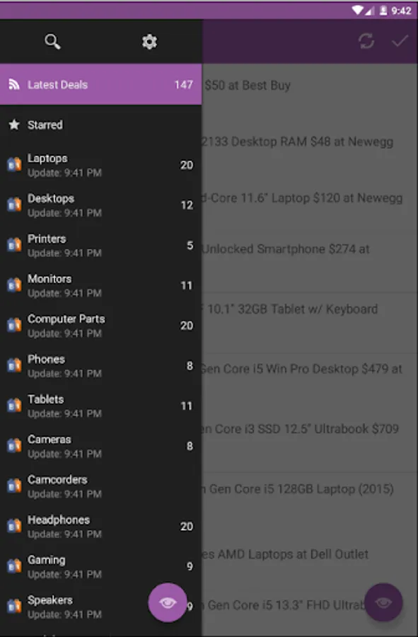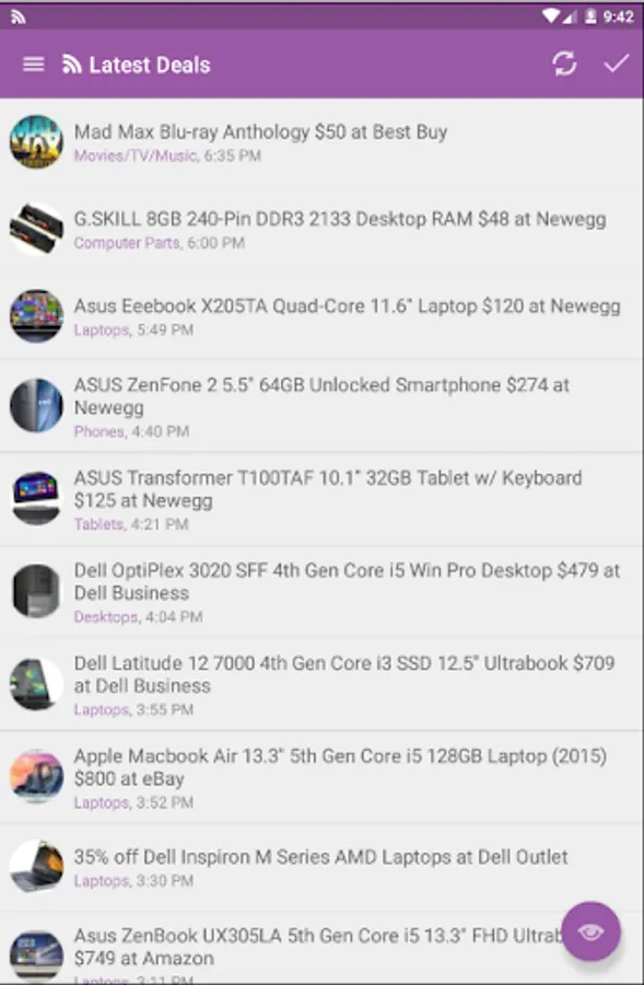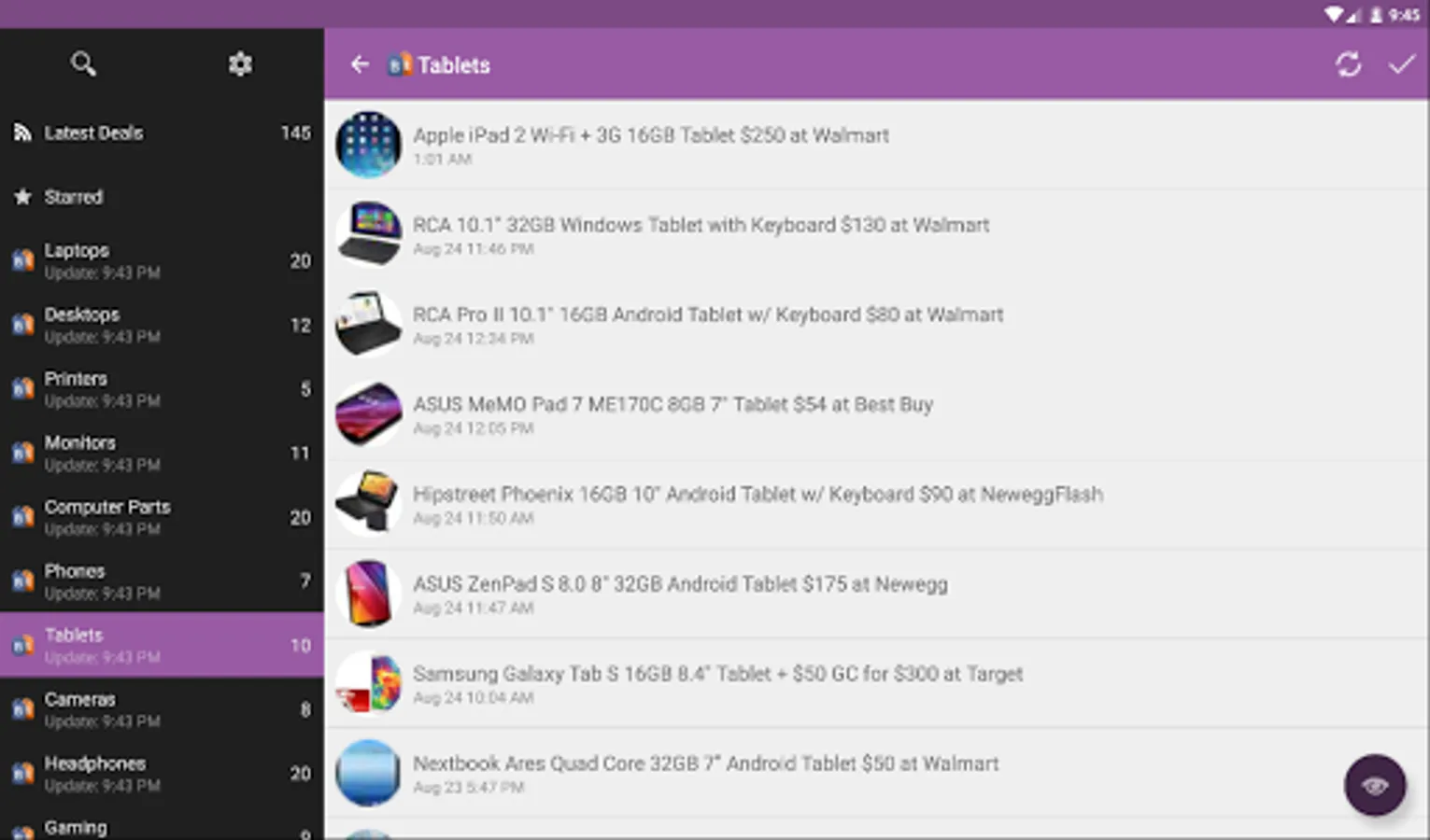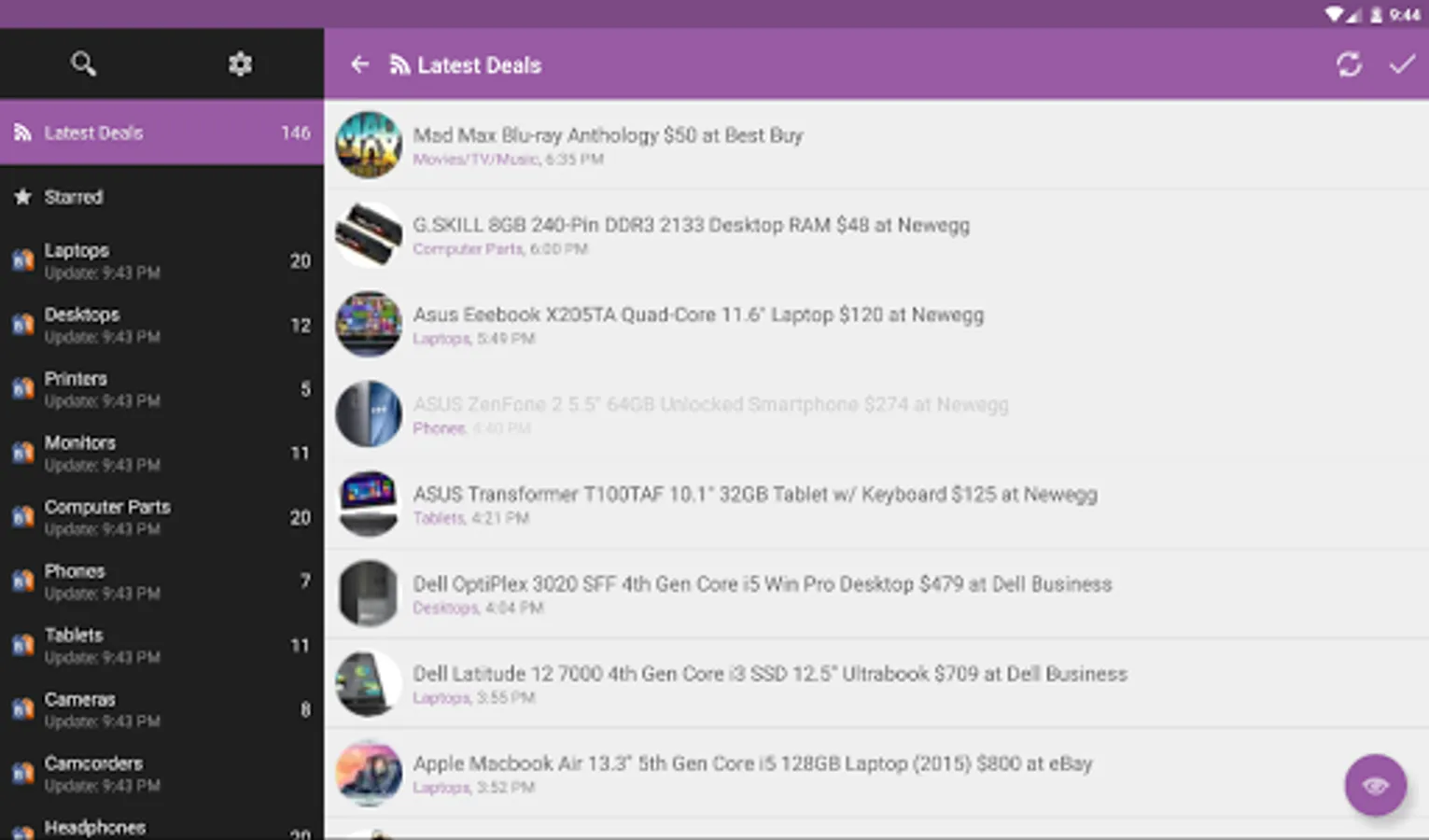 Tech Deals provides you with the best daily deals available from thousands of reputable retailers. Tech Deals is the best tech deals app around that provides you with deals of desktops, laptops, cellphones, tablets, headphones and more. The app aggregates tech deals from different tech websites and retailers and presents in RSS feeds.
