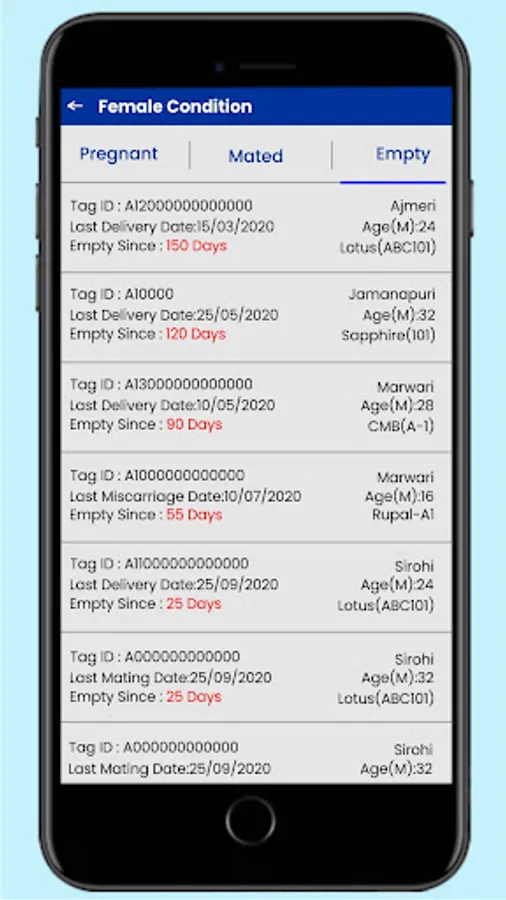• Female animal progress – App helps to report female animal progress based on age, mating status, pregnancy status, kids delivery date and propose next pregnancy schedule.
