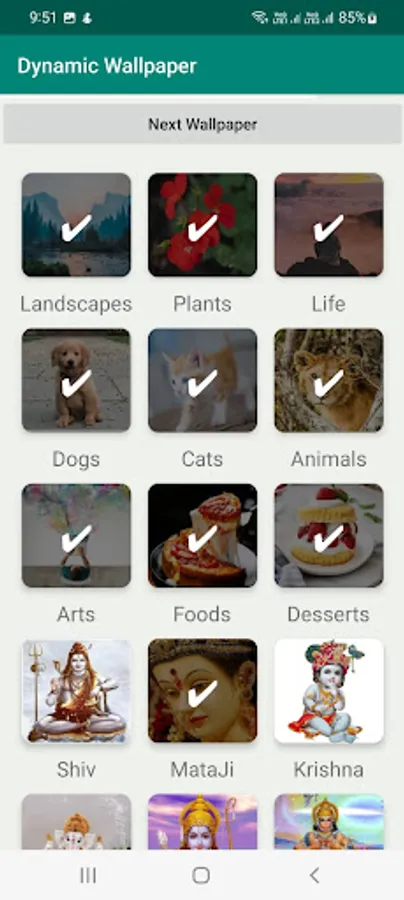 "Landscapes", "Plants", "Life", "Dogs", "Cats", "Animals" , "Arts", "Foods", "Desserts", "Shiv", "MataJi", "Krishna", "Ganesh", "Ram", "Hanuman" , "Horse", "Teddy","Actor","Actress"