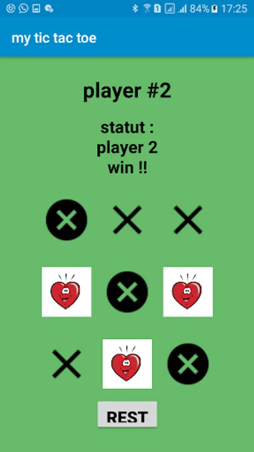 The winner is the one who can align three identical symbols, horizontally, vertically or diagonally.