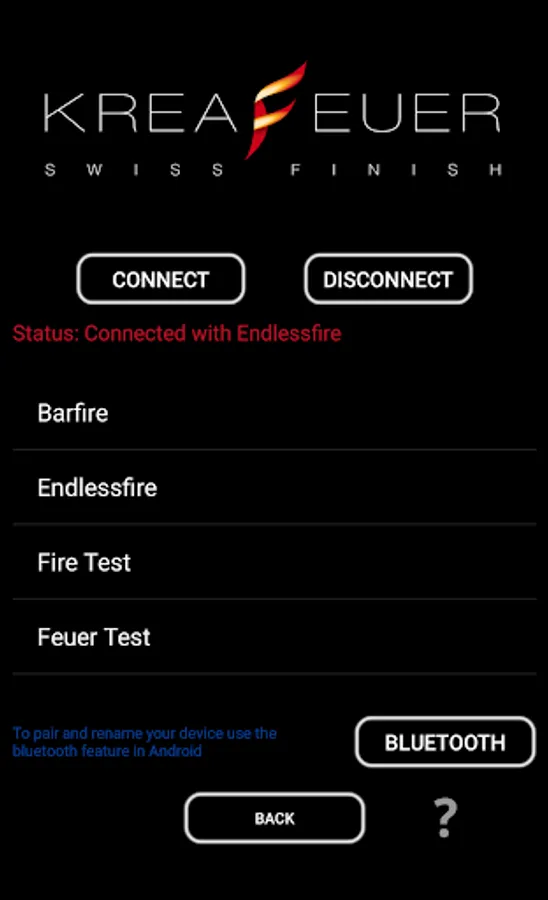 Mit der Kreafeuer App können sie unsere Produkte anhand Bluetooth steuern.