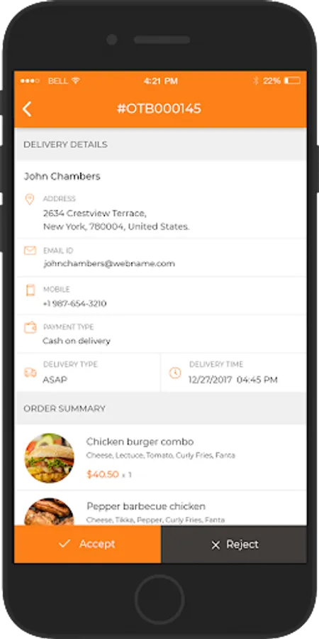 - Accept/Reject the incoming Order