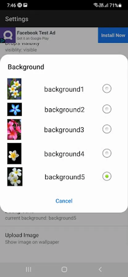 User can select background image of Plumeria Flower from application setting.