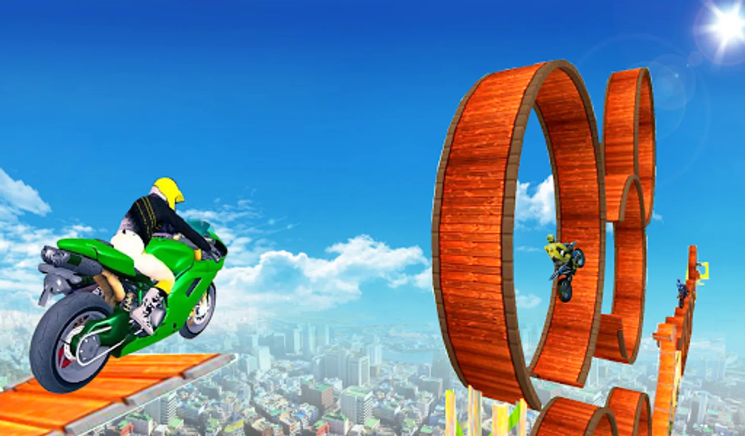 In this bike wala game different motorcycles are available for racing stunts, Choose your favourite one and enjoy the driving. Stunt riders need a good grip on their bike and take the speed normally in this simulator game. In the motorcycle game for safety first put on your helmet, and enjoy the adventure of the stunt and GT bike racing. This motorbike game is a racing simulator mode for stunt games. The motorcycle game is in the sky with dangerous tracks and multiple bike stunts. This stunt-driving GT bike racing game is also designed in water with different tracks. You should enjoy the sky and water track environment in the bike stunt game. From this simulator game, you learn informational things about bike stunt racing. This bike simulator game is designed with different modes for stunt riders.