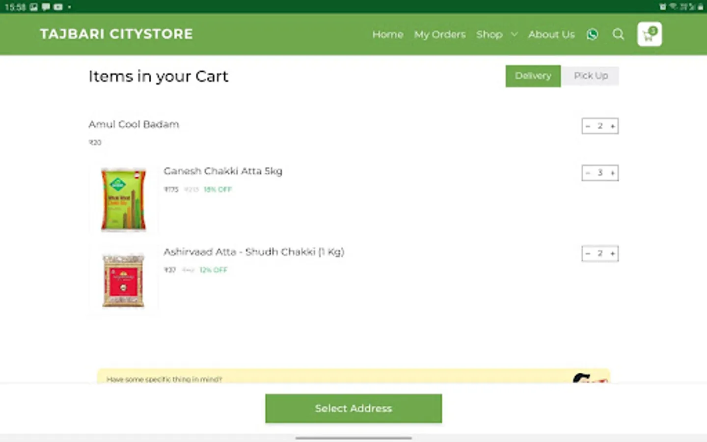 * Pick-up :Our Pick Up Points are specific locations from where you can collect your online order, free of cost.