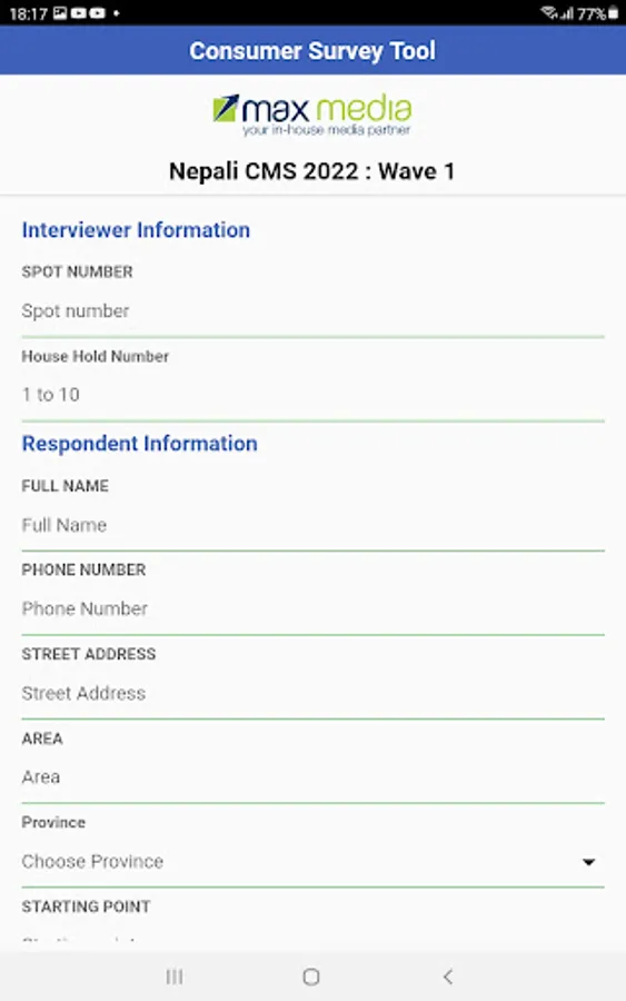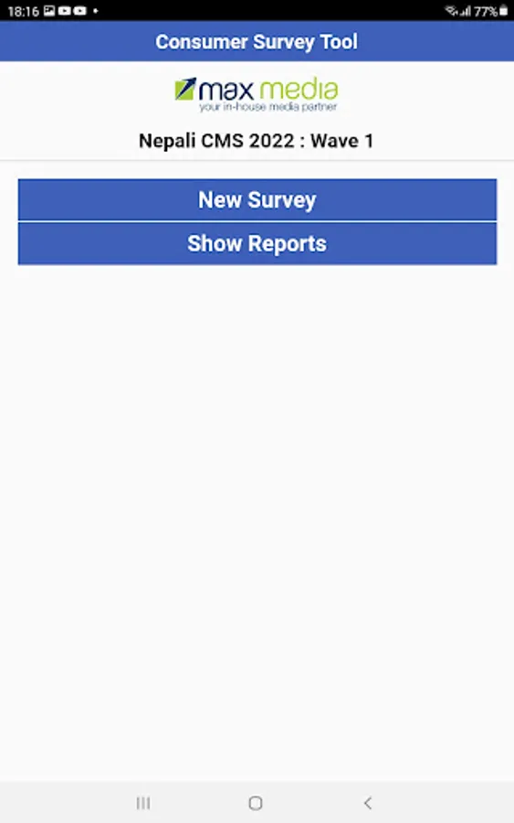 MaxMedia Survey App is an application used by a company named MaxMedia that helps in collecting opinions from different individuals regarding different types of drinks, company, their drinking habits for using the data in analyzing and making a marketing strategy.