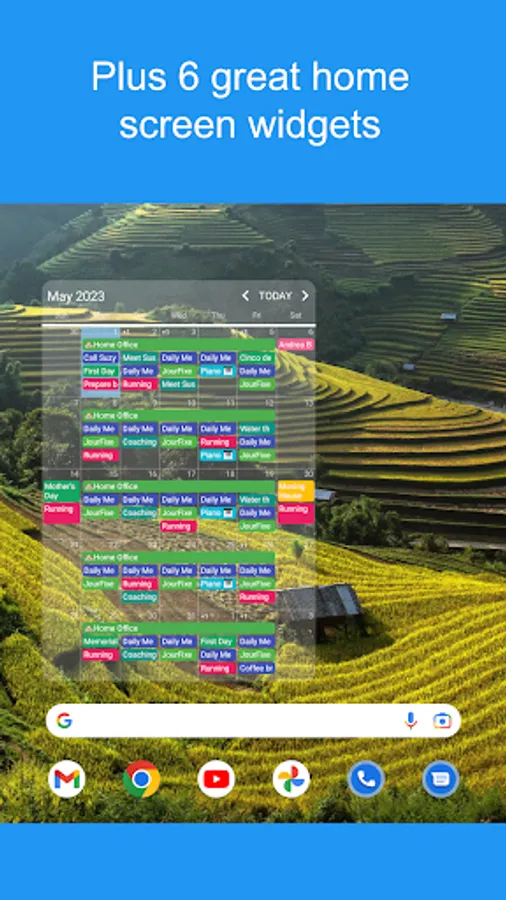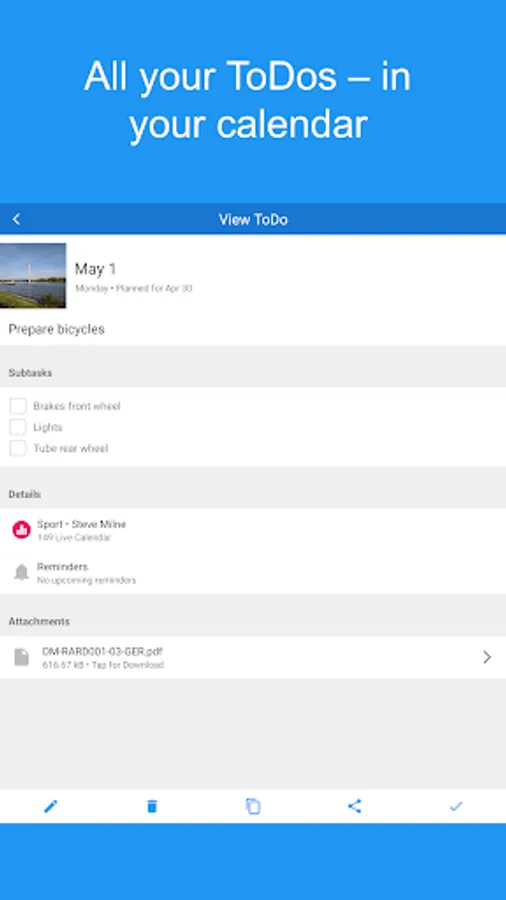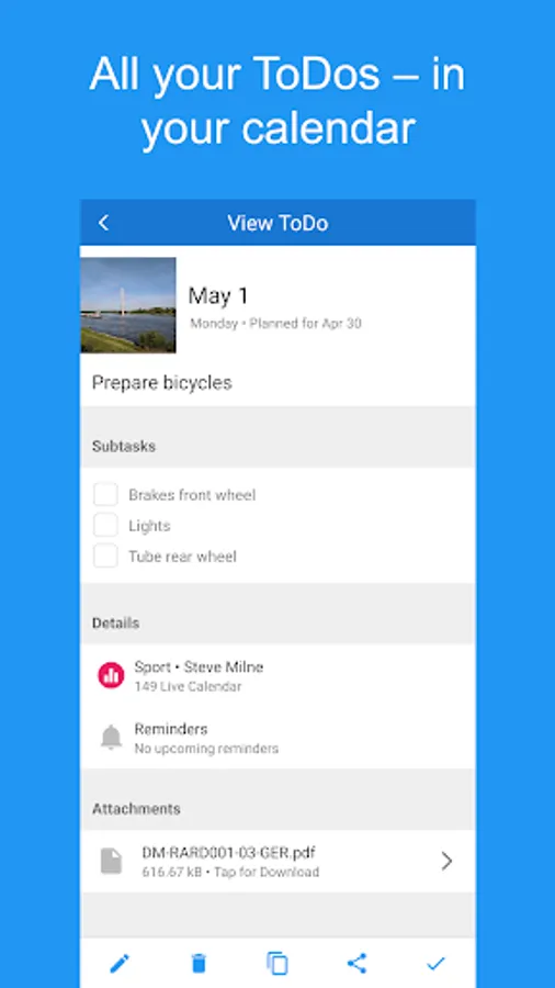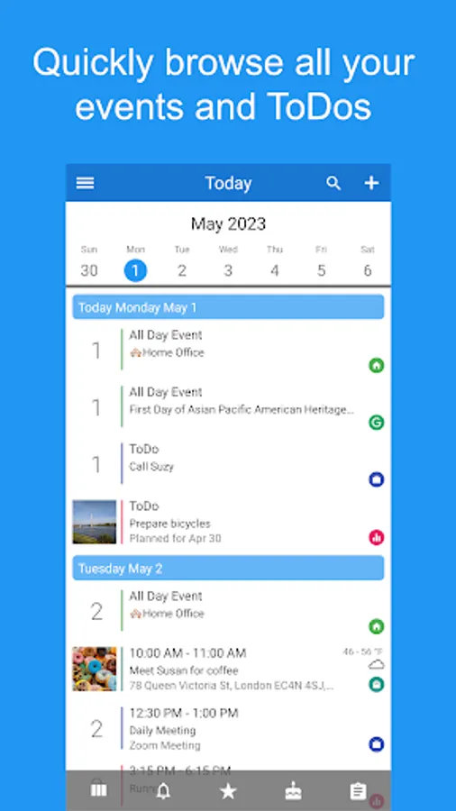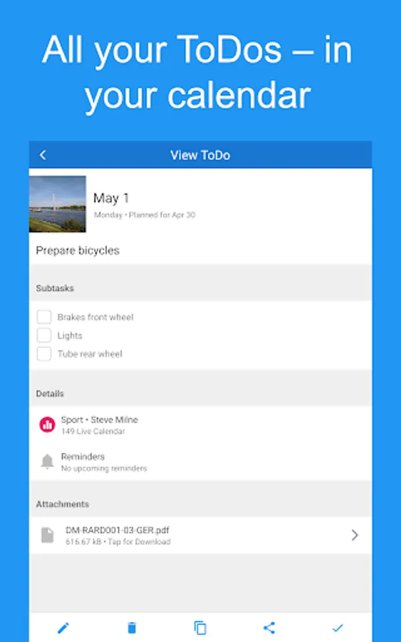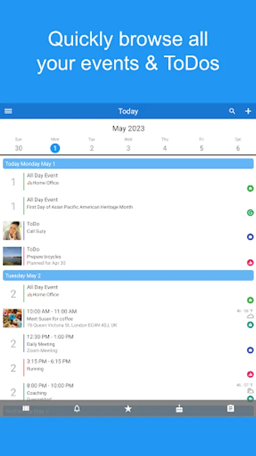 • Easily manage tasks, reminders, shopping lists, and more: Our ToDo list is perfectly integrated into all calendar views and widgets. Plus: Create own ToDo lists, set reminders, synchronize ToDos across all your devices, and view and manage Google Tasks!