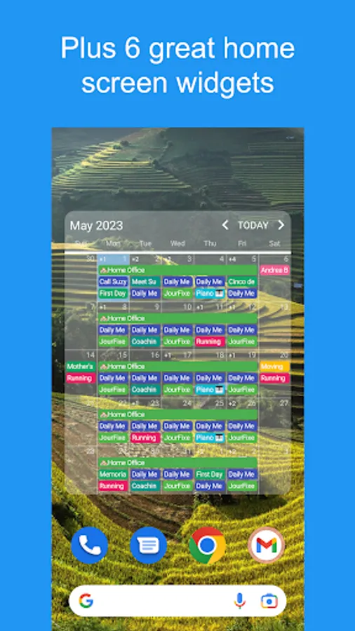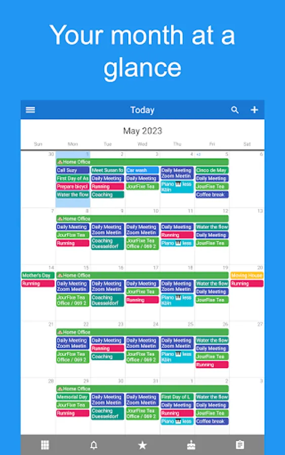 • Explore six great calendar views - list, tables, schedule, or map, from single day to full-year scope, via app or home screen widgets - all crafted with love and attention to detail.