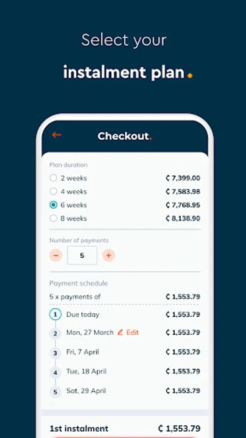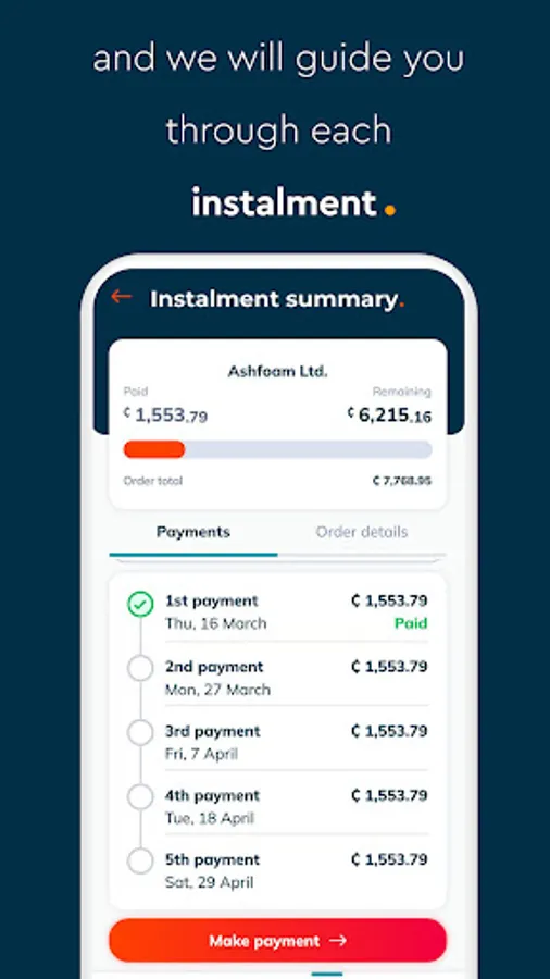3. Choose the number of instalments and make your first payment.