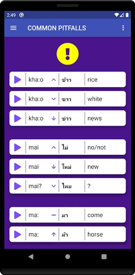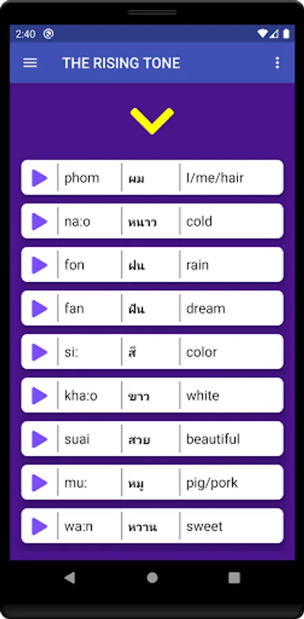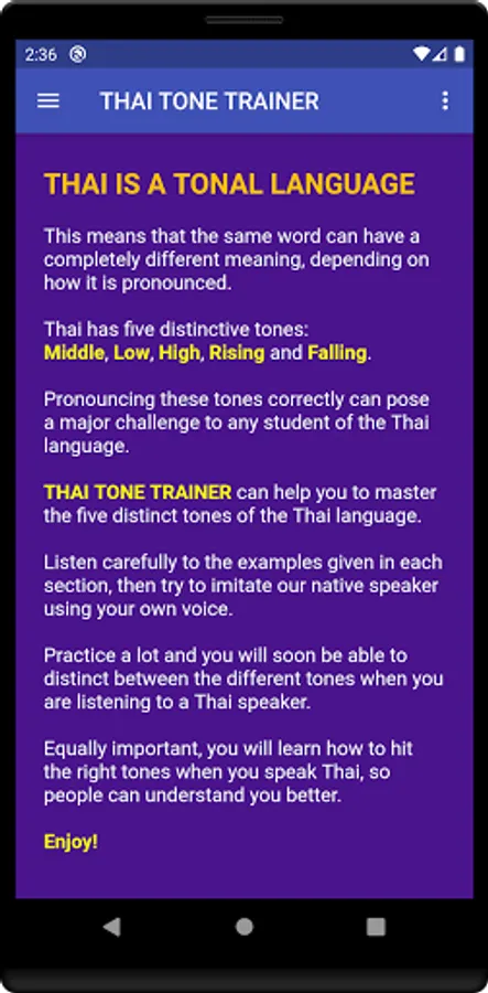 Thai Tone Trainer helps you to master the five distinct tones of the Thai language.