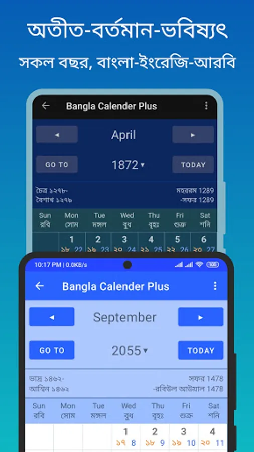 With Bangla Calendar Plus App now you can view any date in Bangla, English, and Arabic date at the same time from past, present, or future.