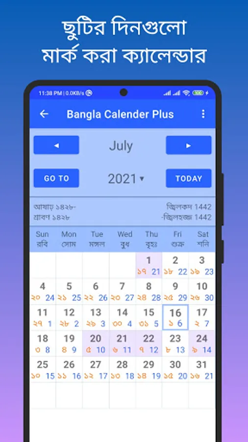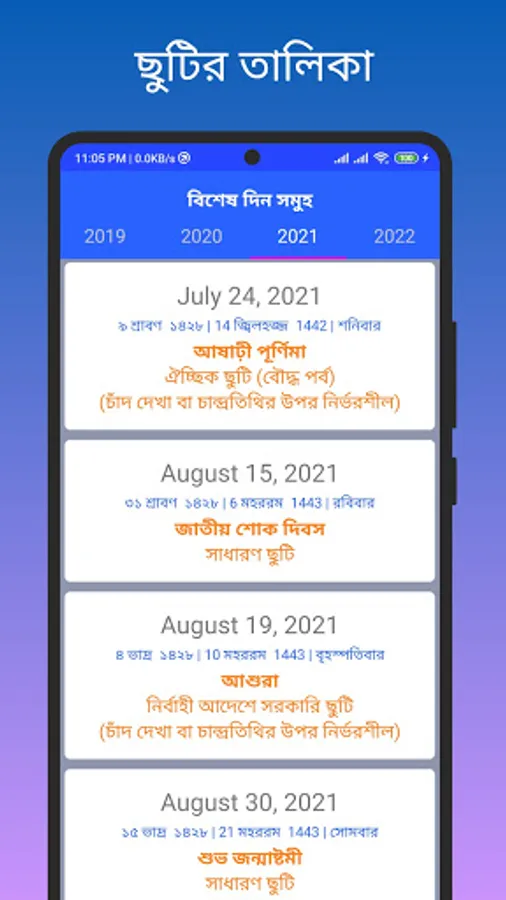 Bangla Calendar Plus comes with Bangla Calendar 2021. It is a Bangla Calendar of Lifetime. This means you get the Bangla Calendar of all year with