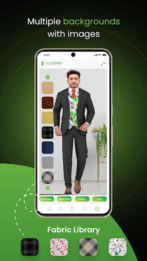 Our online Tailoring app allows users to upload different fabric designs in different areas according to their preferences, giving them a wide selection of choices.