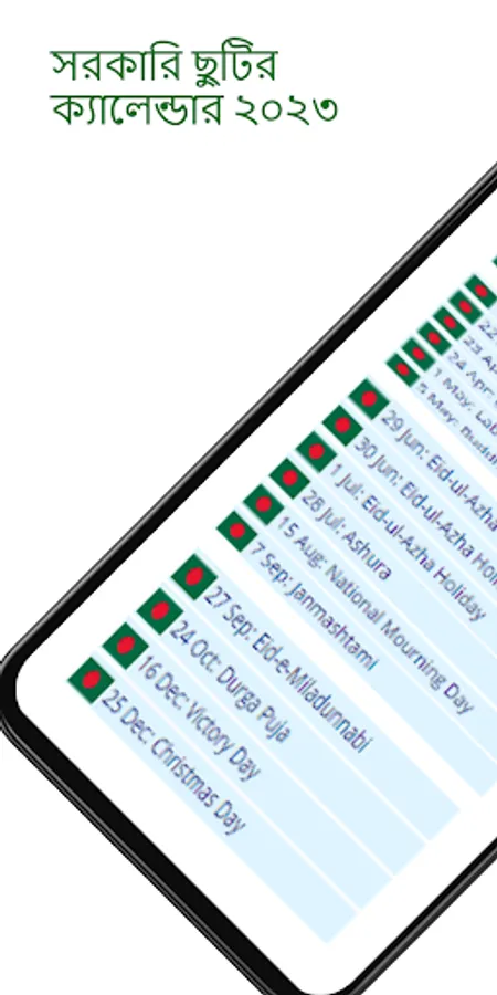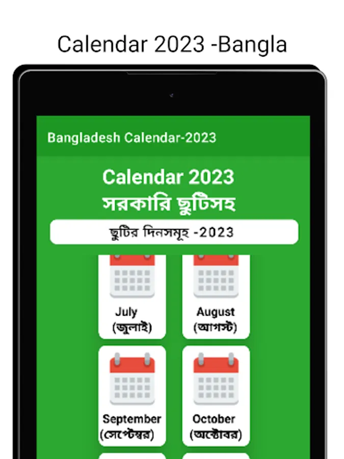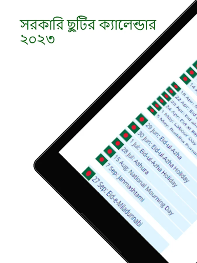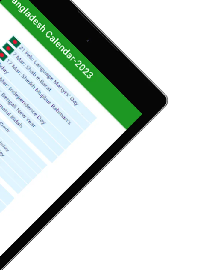বাংলাদেশের সরকারি ও বেসরকারি চাকরিজীবীদের জন্য সরকারি ছুটির তালিকা সম্পর্কে ধারণা রাখা খুবই দরকার। তাই প্রত্যেকের কাছে প্রতিবছরের সরকারি ছুটির তালিকা কিংবা একটি ক্যালেন্ডার সাথে থাকা জরুরি। আর সেই ছুটির ক্যালেন্ডার থেকে ছুটির দিন সম্পর্কে যদি আরো বিস্তারিত তথ্য জেনে নেয়া যায় তাহলে তো কথাই নেই। এ প্রয়োজনীয়তা বিবেচনা করেই আমরা ২০২৩ সালের সরকারি ছুটির ইংরেজি ক্যালেন্ডার নিয়ে এ অ্যাপটি ডেভেলপ করেছি। সরকারী ছুটিসহ ২০২৩ সালের ক্যালেন্ডার টি আপনারা পাচ্ছেন খুব সহজেই এবং ব্যবহার করা খুবই সহজ।
