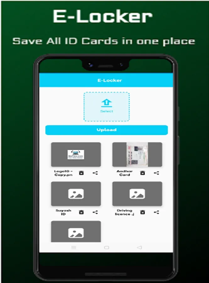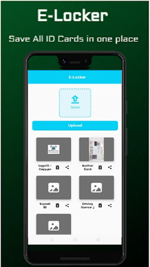 4) E-Locker - It allows storage to save and showcase your ID cards in one place