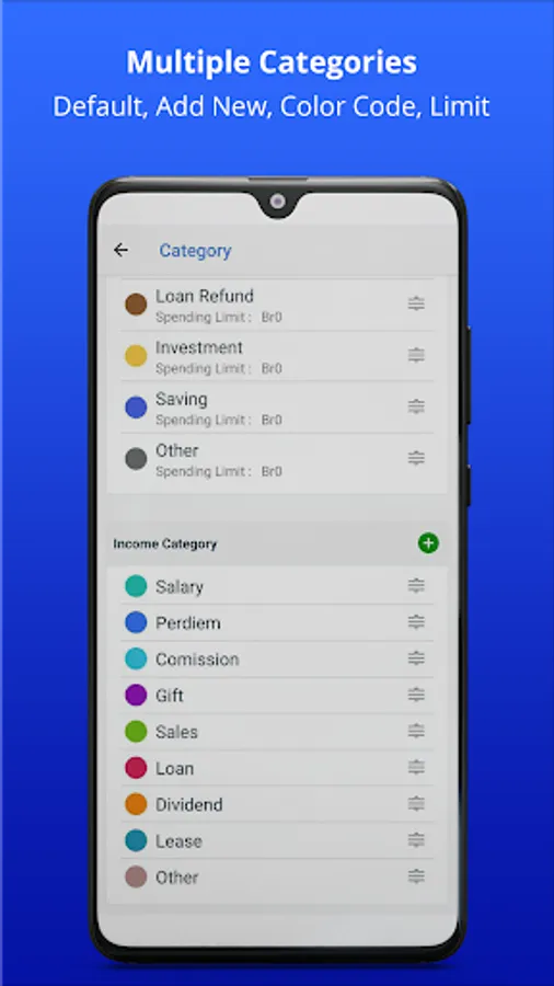 • Multiple Income & Expense Categories
