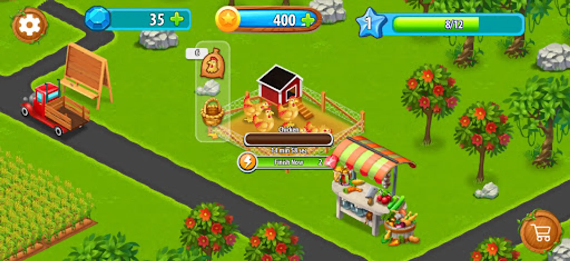 In addition to the animals, you can also grow numerous types of vegetables and fruits in your farming factories. With so many different options, you'll never run out of things to do in Golden Farm Fantasy City. You can process your fruits and vegetables to create even more products to trade and sell in the market.