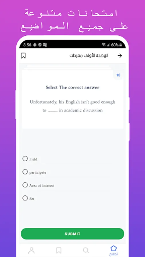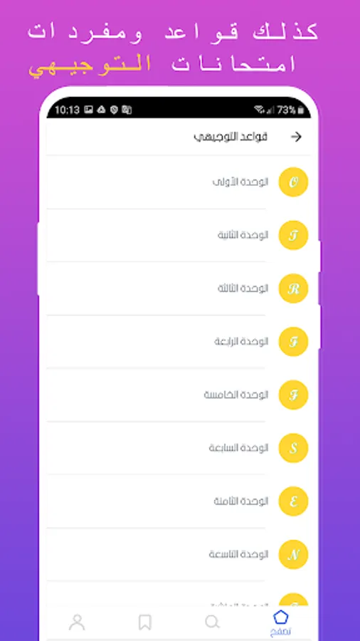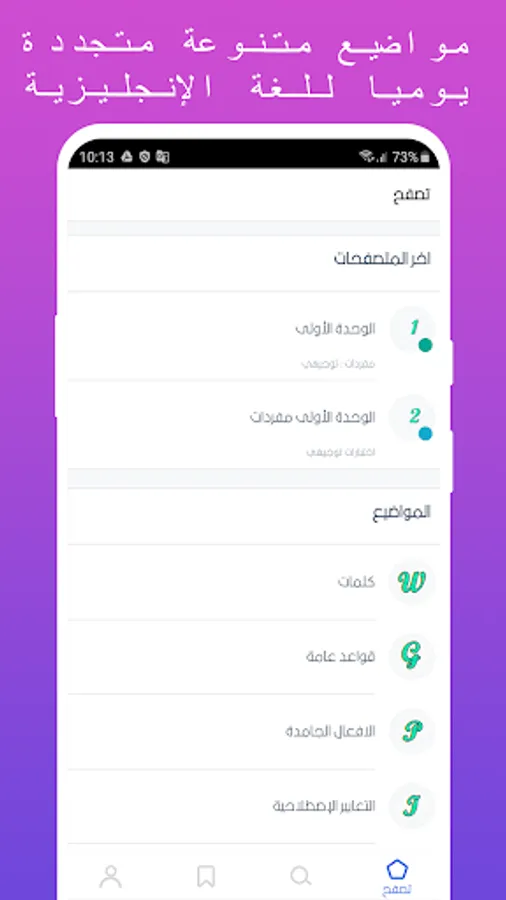 The app contains many general topics in English as well as vocabulary, grammar and guideline exams for the Palestinian English curriculum.