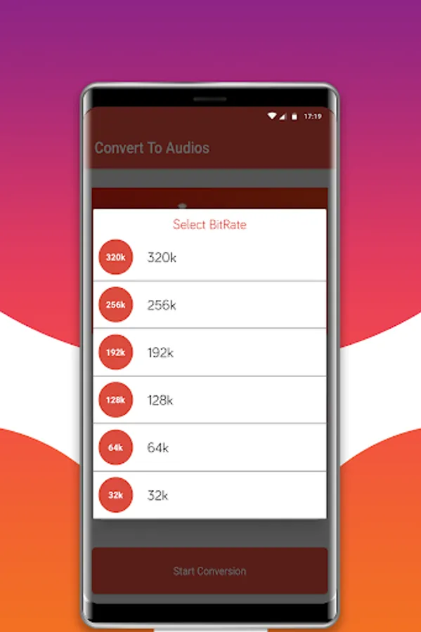 2 – Select Bit Rate: Using this video to audio converter, you can select the bit rate for your audio formats. The app allows you to number of different bit rates when converting videos to audios. You can convert your video to audio in 320K, 256K, 192K, 128K, 64K, and 32K bit rate.