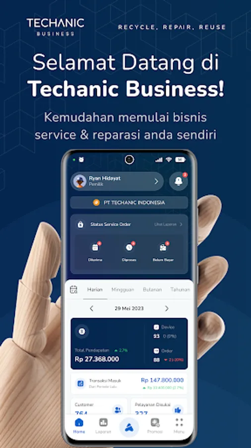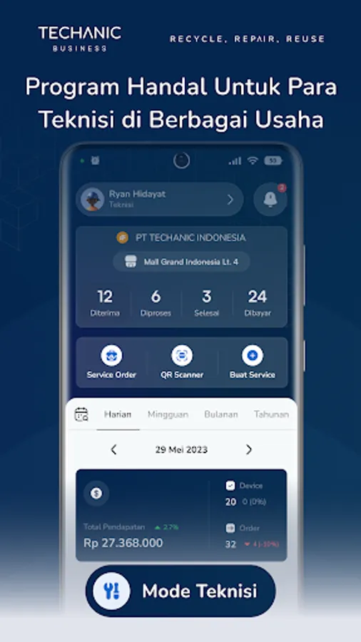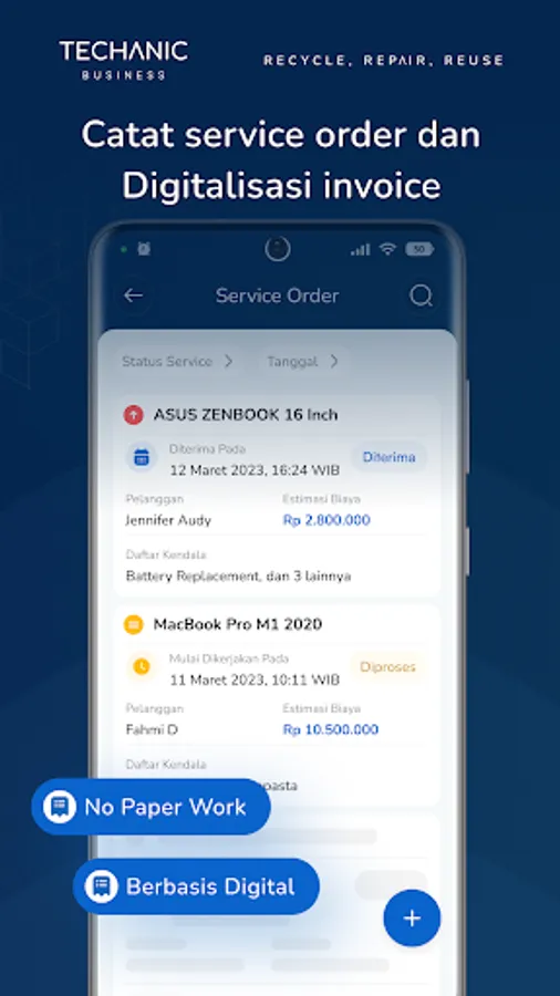 keep track of your repair activities and work closely with repair business owners with the Techanic Business app