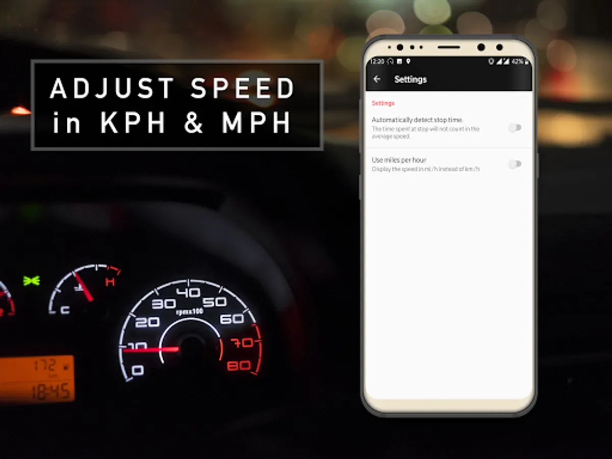 • Option to change speed units to km/h or miles/h